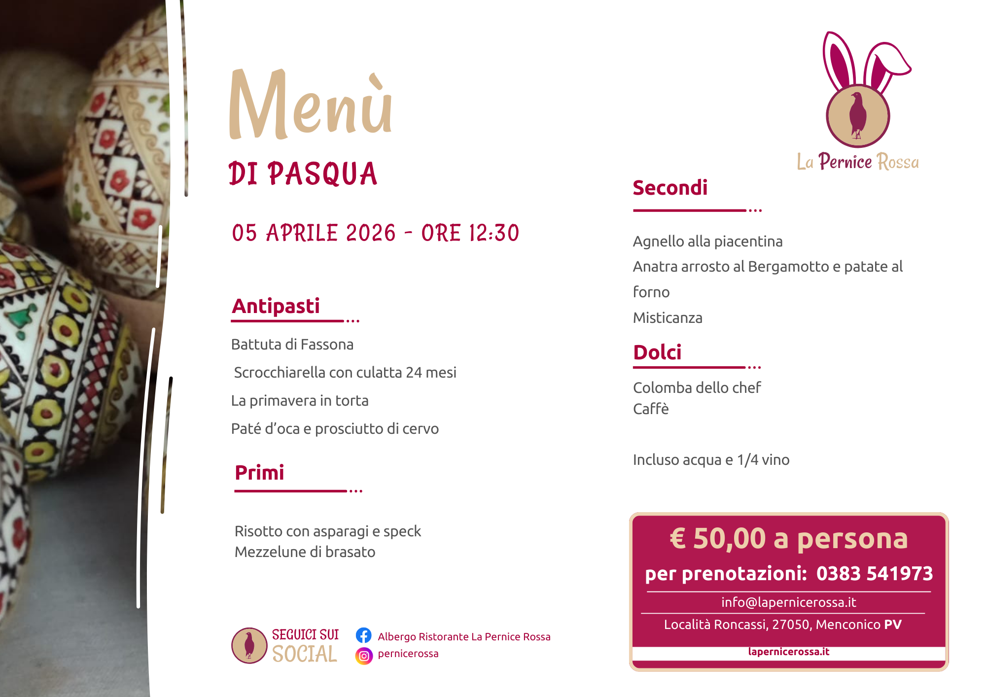 Alla Pernice Rossa celebriamo questa giornata speciale con un menù dedicato, pensato dallo chef Claudio per esaltare i sapori della stagione e i prodotti del territorio.